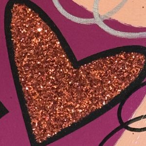 Mixed media with acryllic painting, diamond dust and oil pen drawing on canvas. Hand signed in pigment lower right by the artist. Signed and dated on the verso. A unique work.”