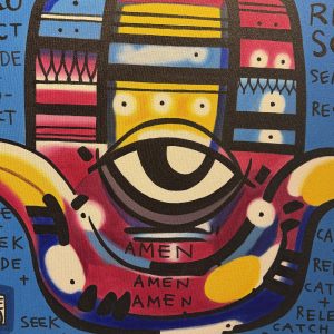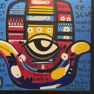 Lebo’s visual storytelling method pulls from classic American cartooning and fine art, every form of indigenous art and Egyptian hieroglyphics to create a unique visual language – one that strives to have a wide point of entry for the viewer with endless layers of meaning within. It is a world where mythology, history, metaphysics and illustration all join seamlessly.