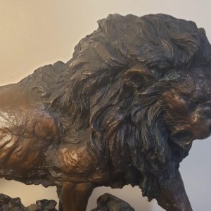 Lorenzo E. Ghiglieri Sovereign Reign Bronze Lion Sculpture (36″x8″x20″) #91/137.