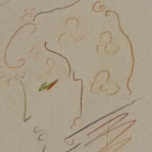 Etching with hand-coloring and unique, hand-drawn colored pencil