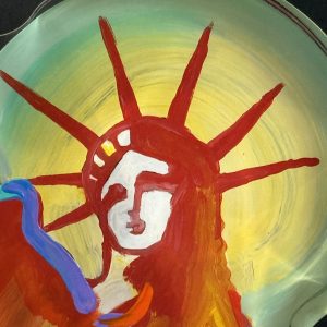 Acrylic sculpture hand painted in the Peter Max Studio. Hand-signed