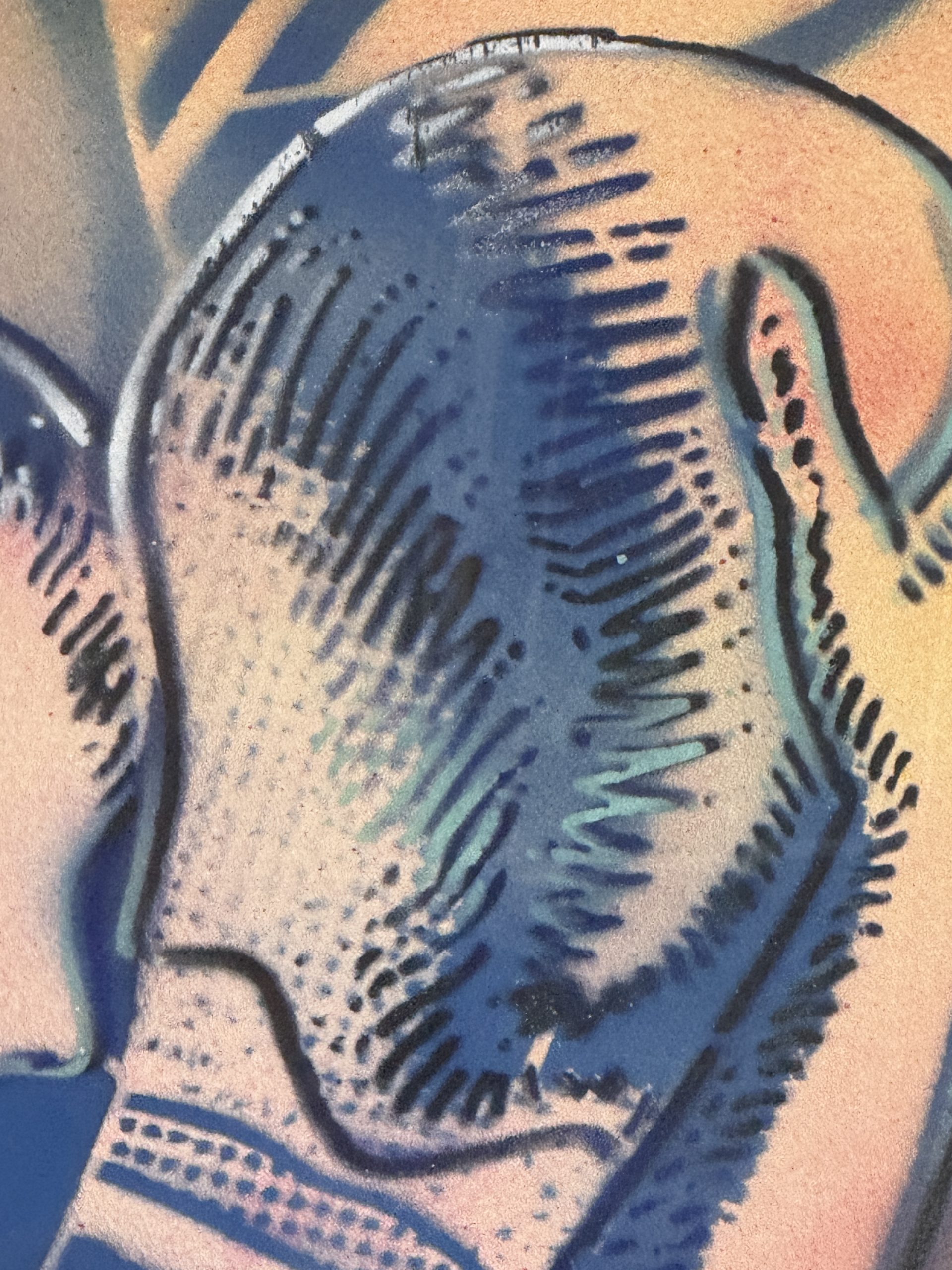 41 5/8 x 29 7/16″ Painting on paper, hand signed in pigment lower left by artist. Signed and titled on the verso. A unique work.